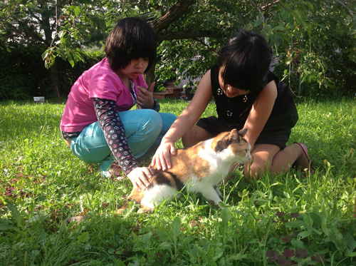 Lũ trẻ chơi đùa dưới gốc mận trong “đa cha”. |